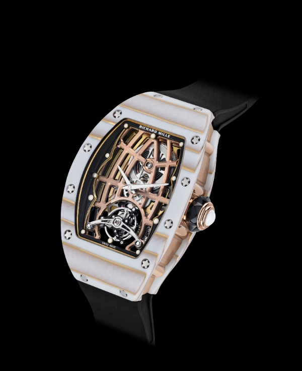 RM16-02为品牌带来了推出全新TerracottaQuartzTPT赤土色石英纤维材质的契机。这款复合材质被打造成表圈,与QuartzTPT乳白色石英纤维款材质的中层表壳组装在一起,呈现出一种未经修饰的原始质感,充分体现了该款腕表的设计初衷,毫无矫饰,彰显粗野主义建筑风格尊崇的理念。